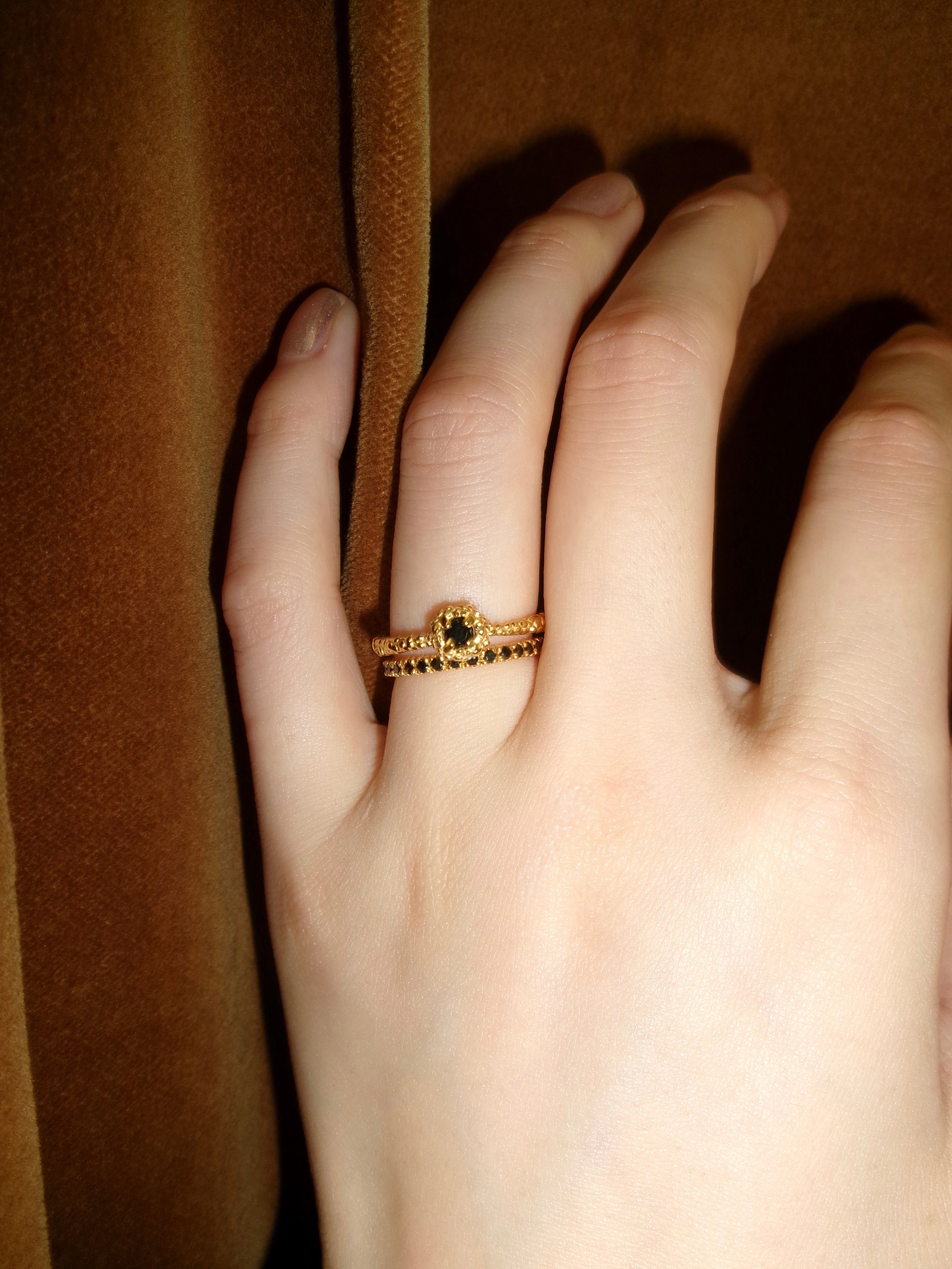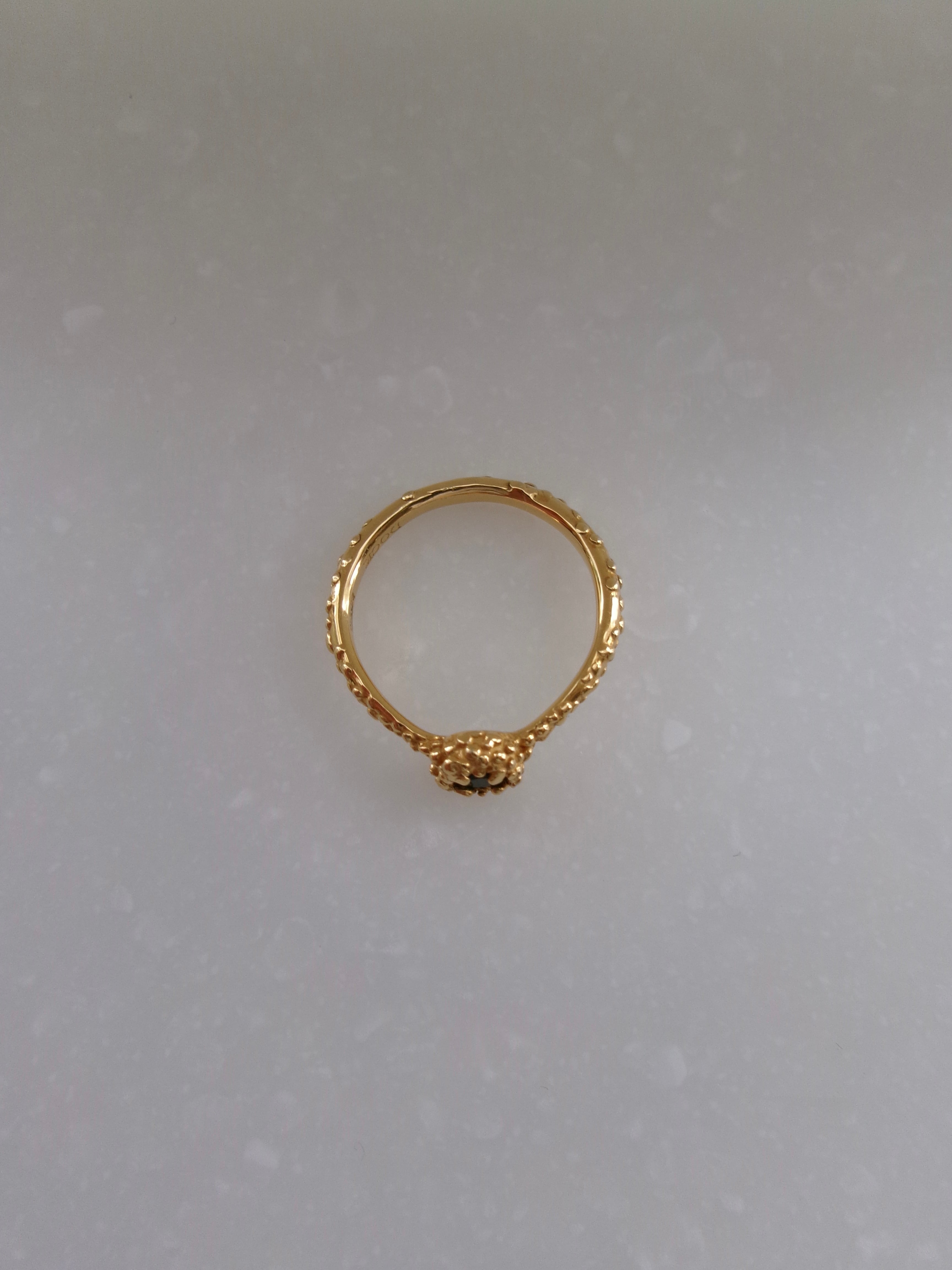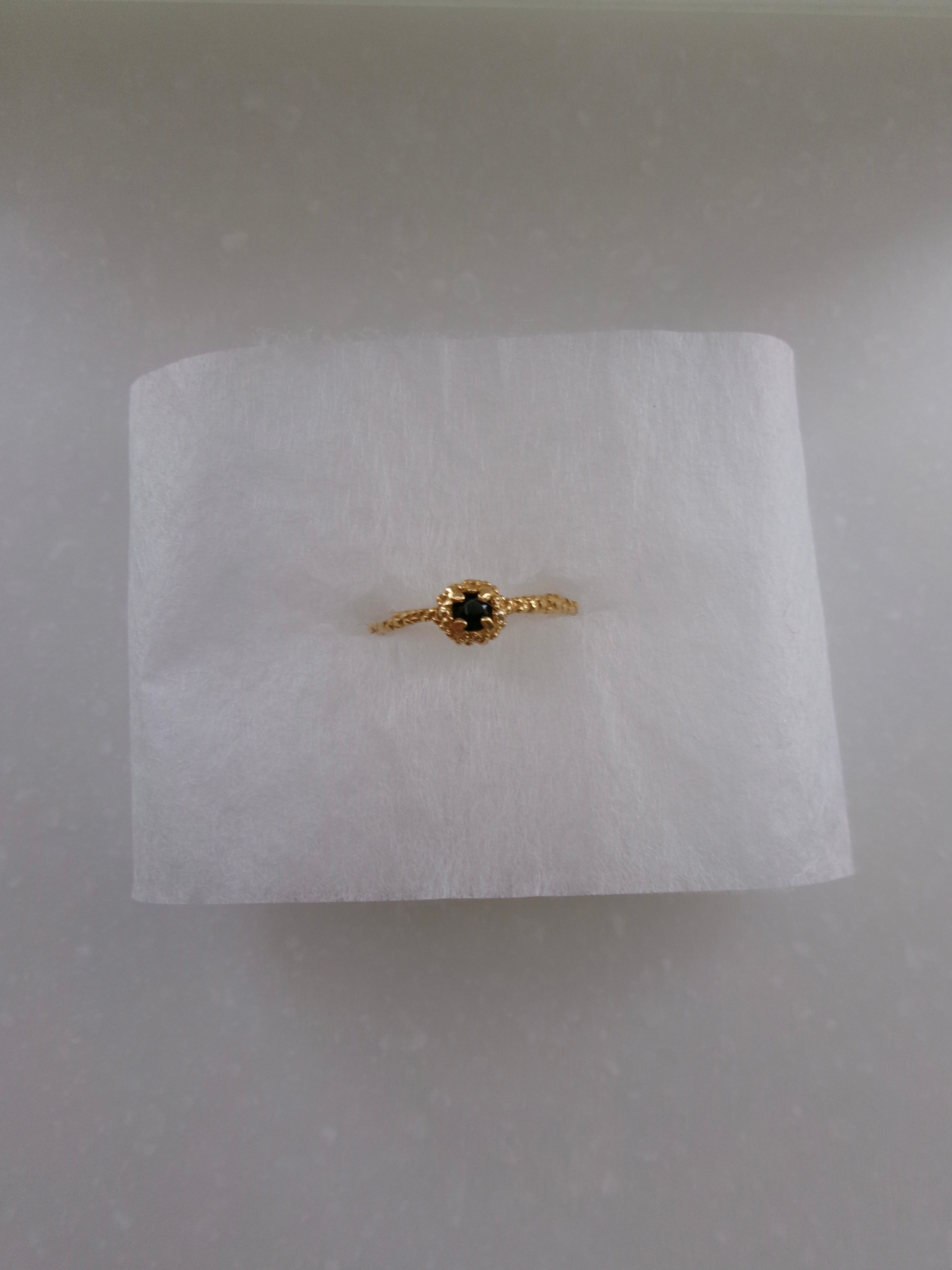 つぶつぶのデザインとラウンドブリリアンカットの石の反射が美しいリング。