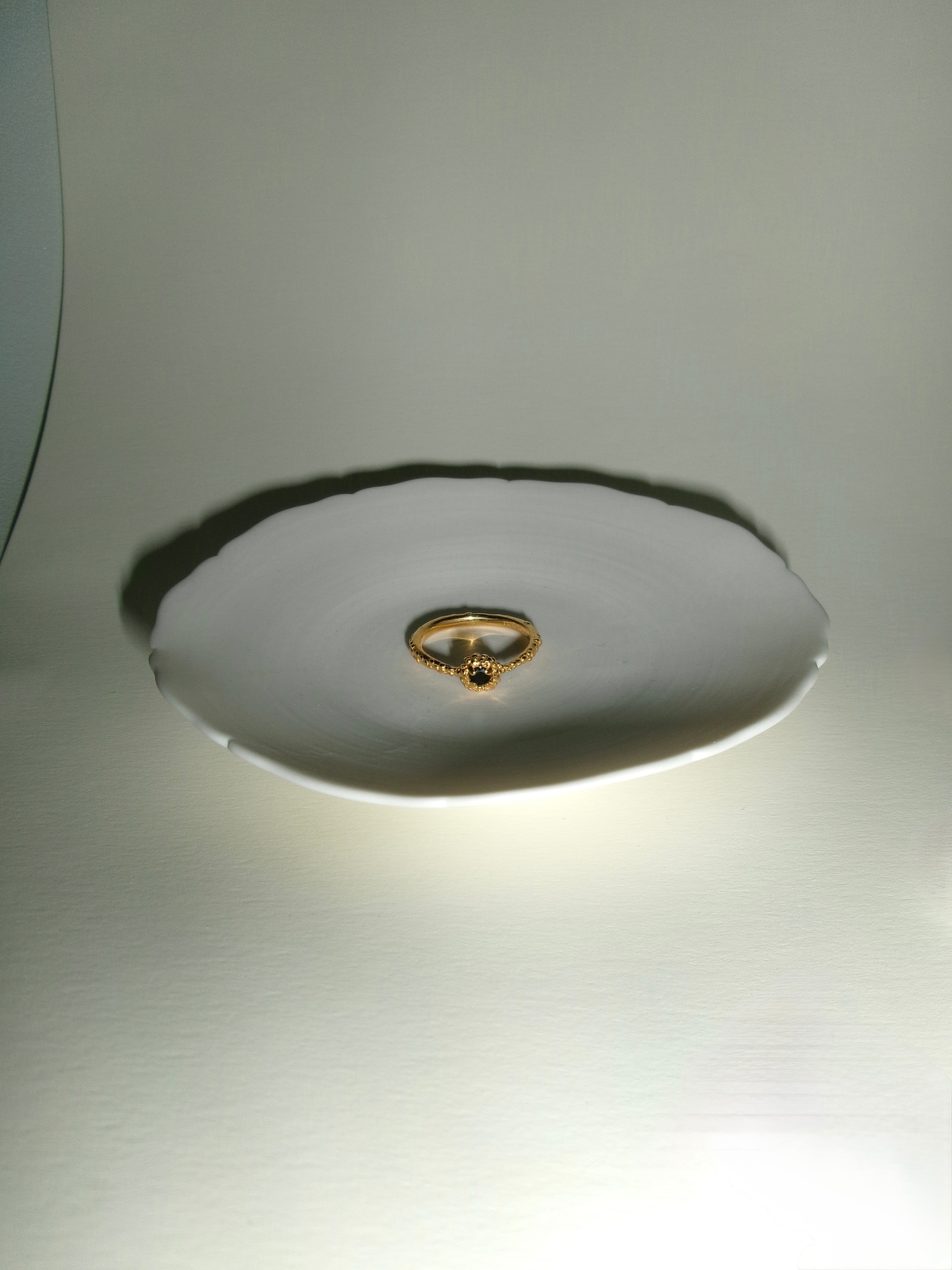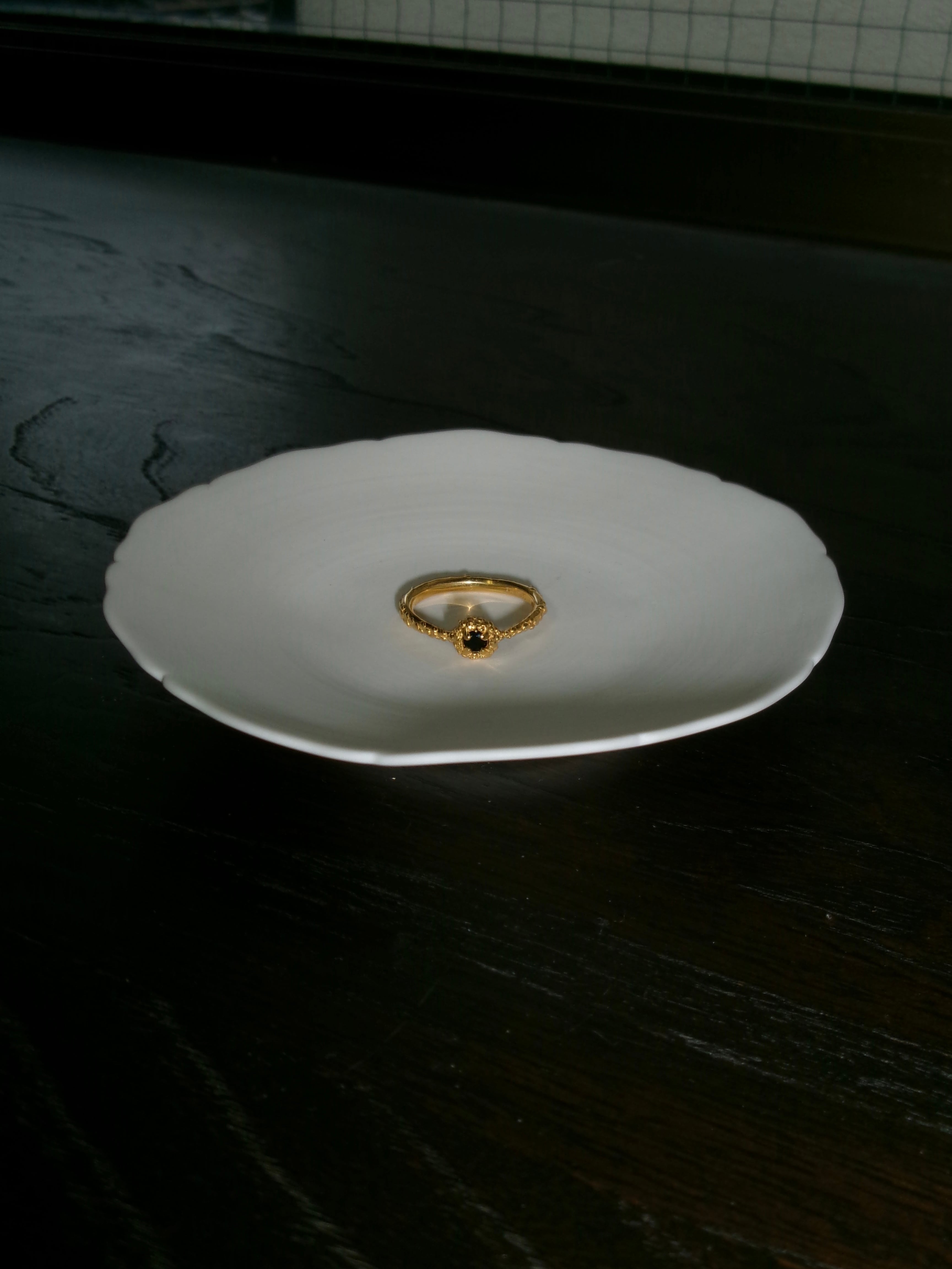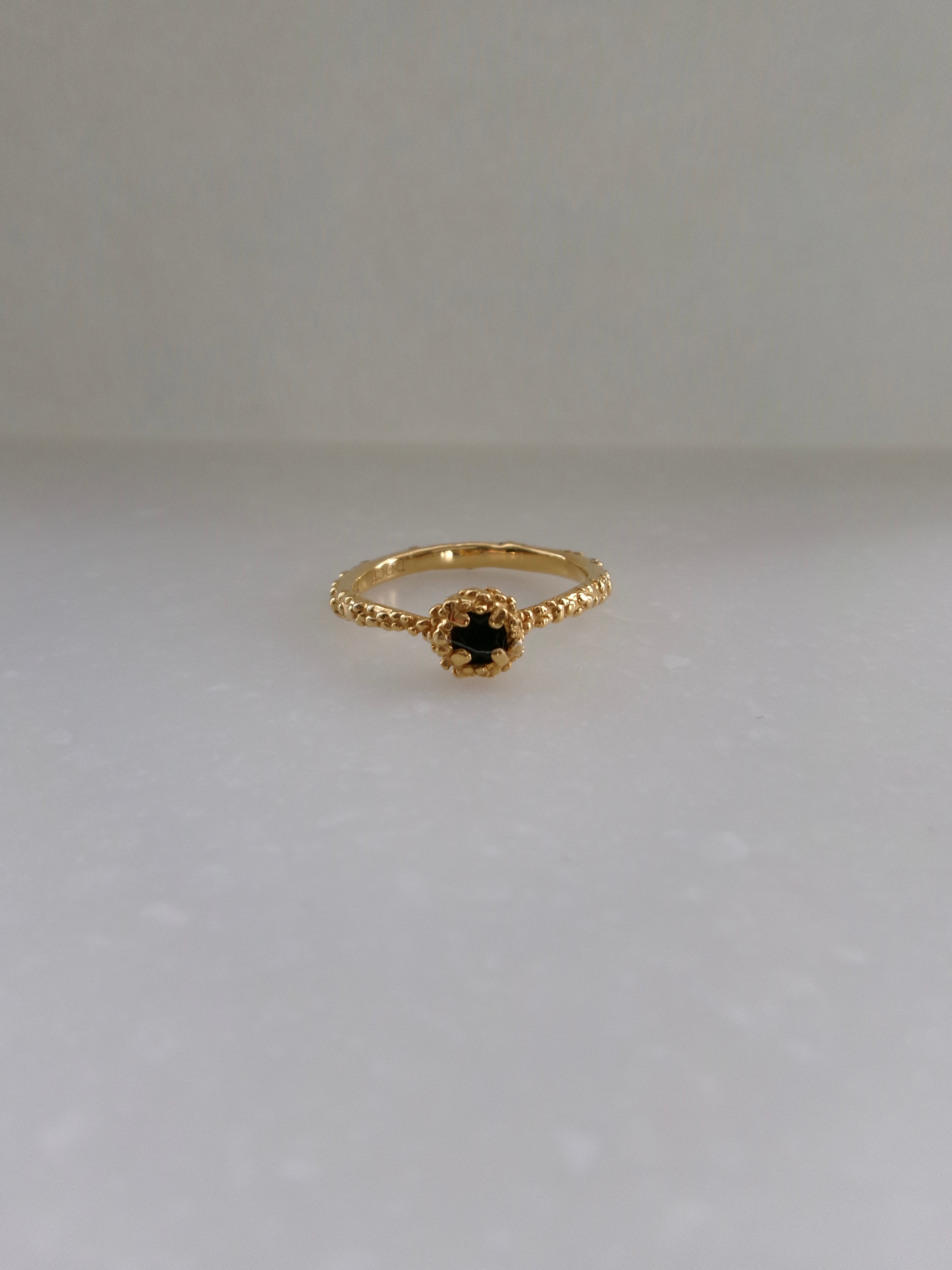 つぶつぶのデザインとラウンドブリリアンカットの石の反射が美しいリング。
