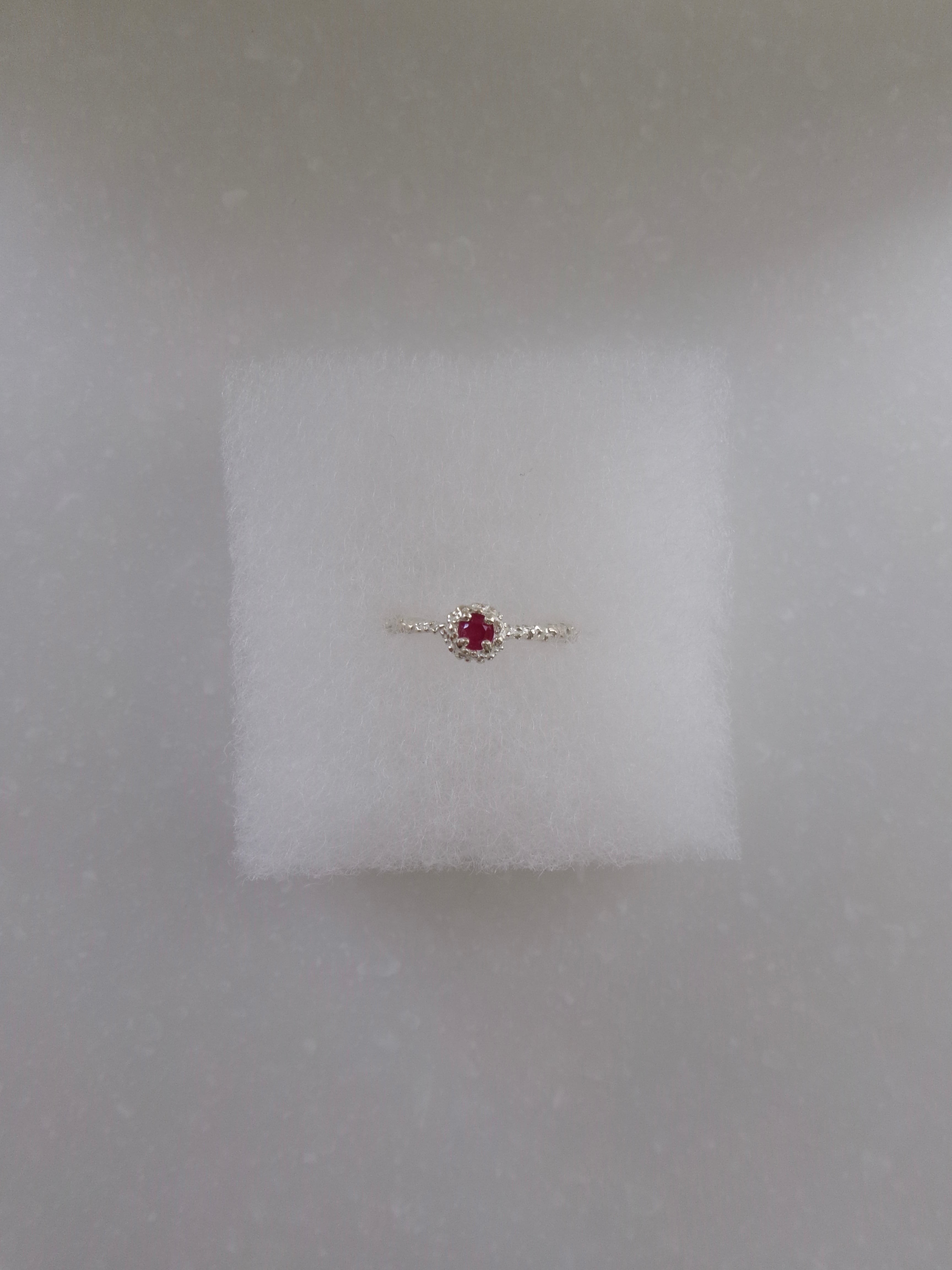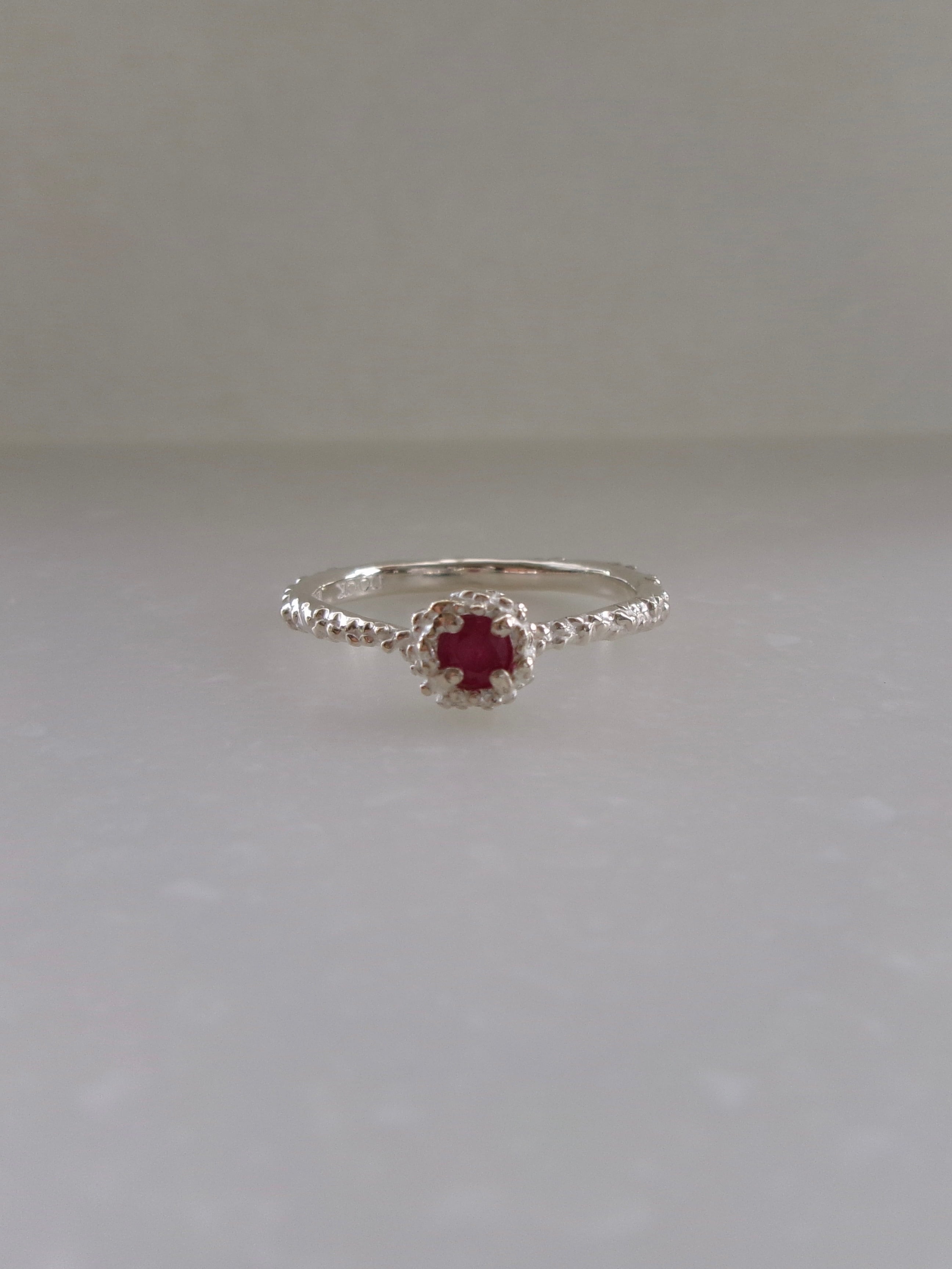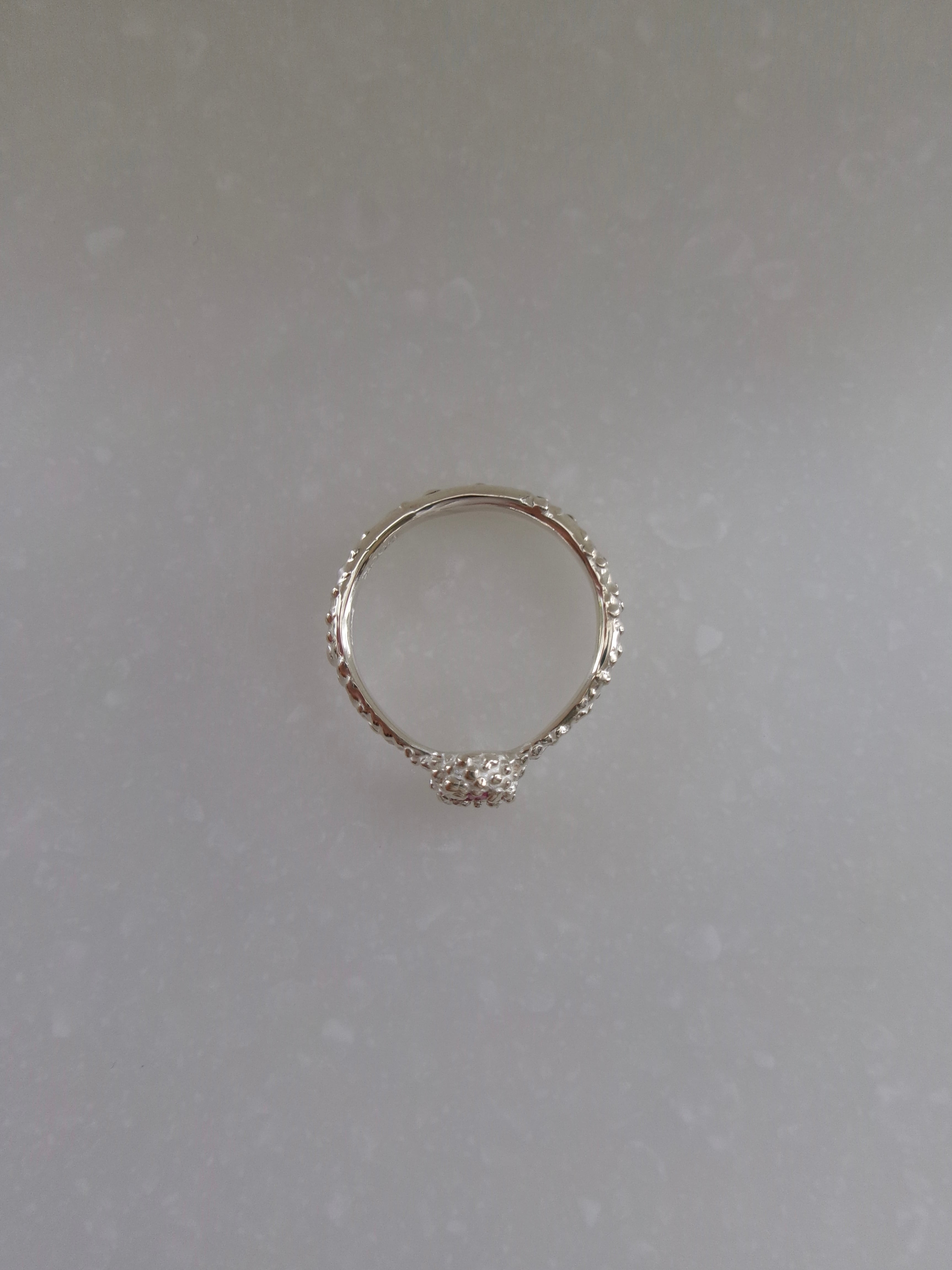 つぶつぶのデザインとラウンドブリリアンカットの石の反射が美しいリング。