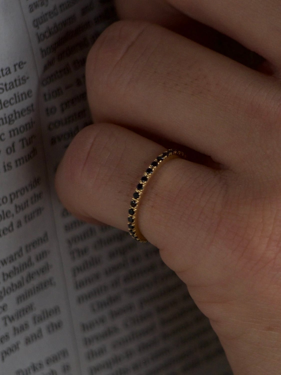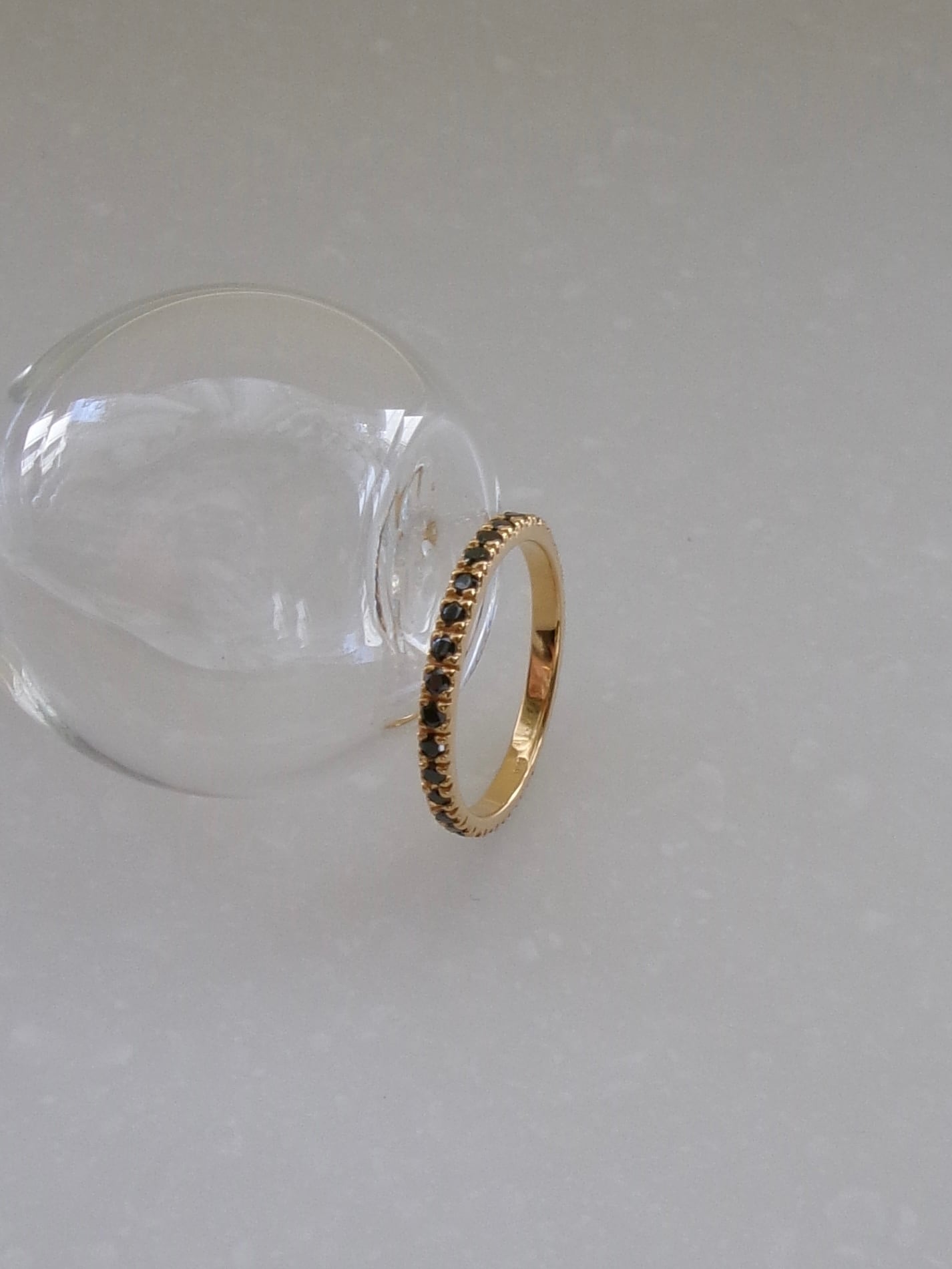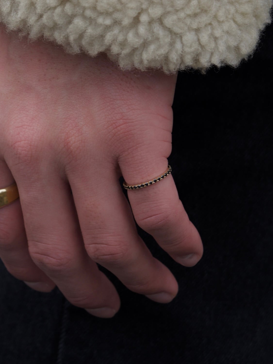 幅の細さにこだわったフルエタニティーリング。シンプルでありながらも、ジルコニアの輝きが手元で際立ち、普段のコーディネートのポイントに。