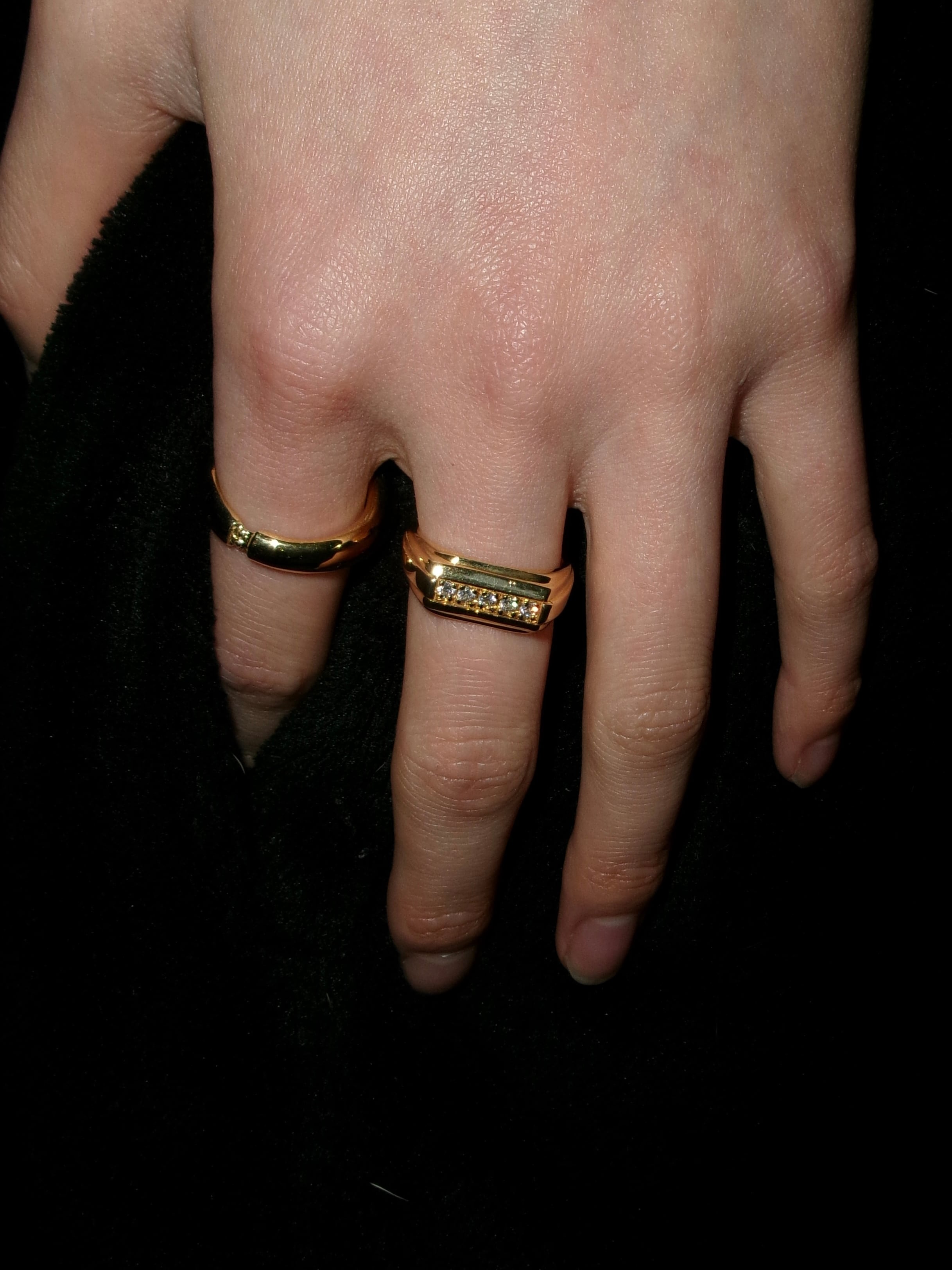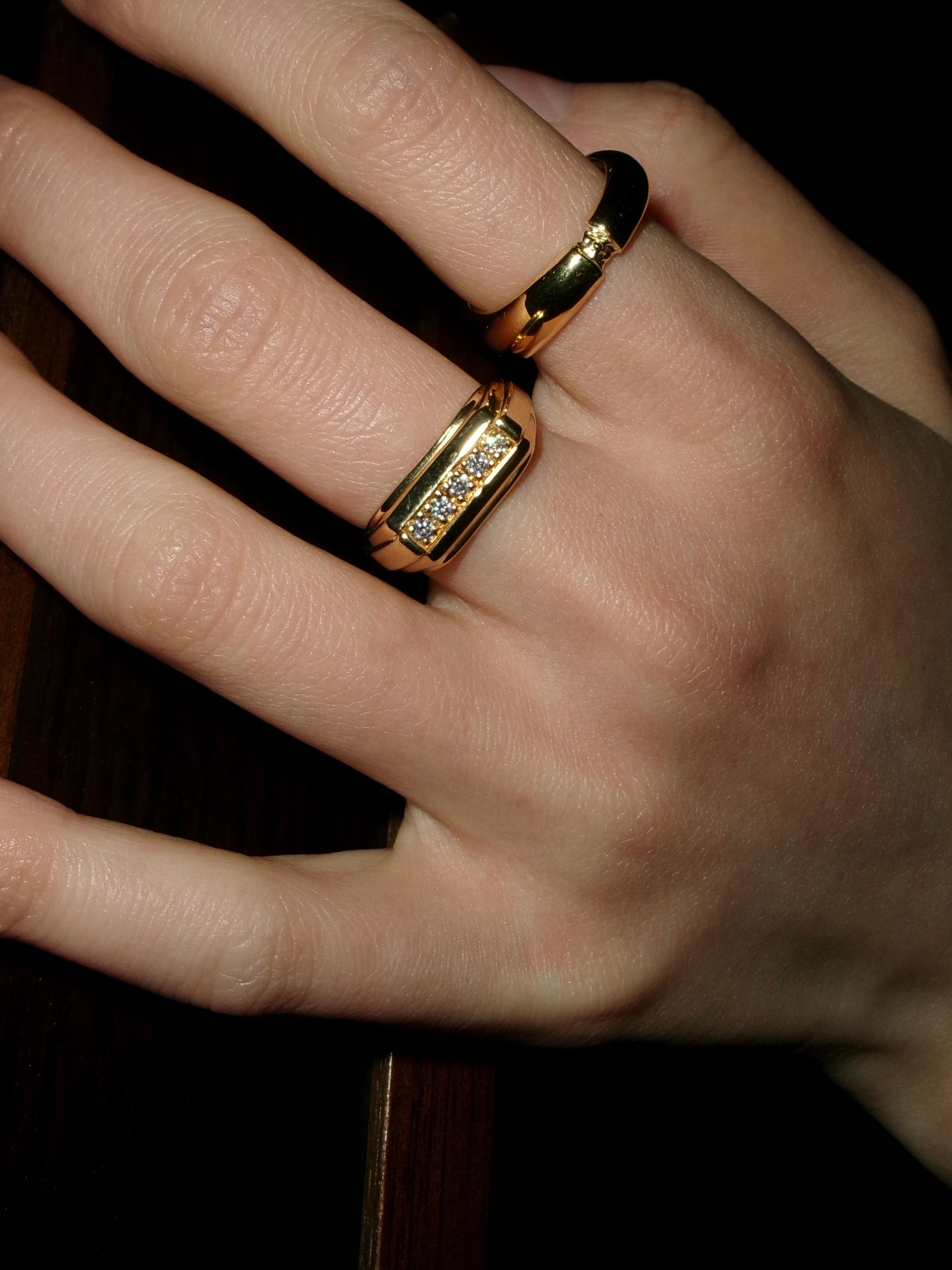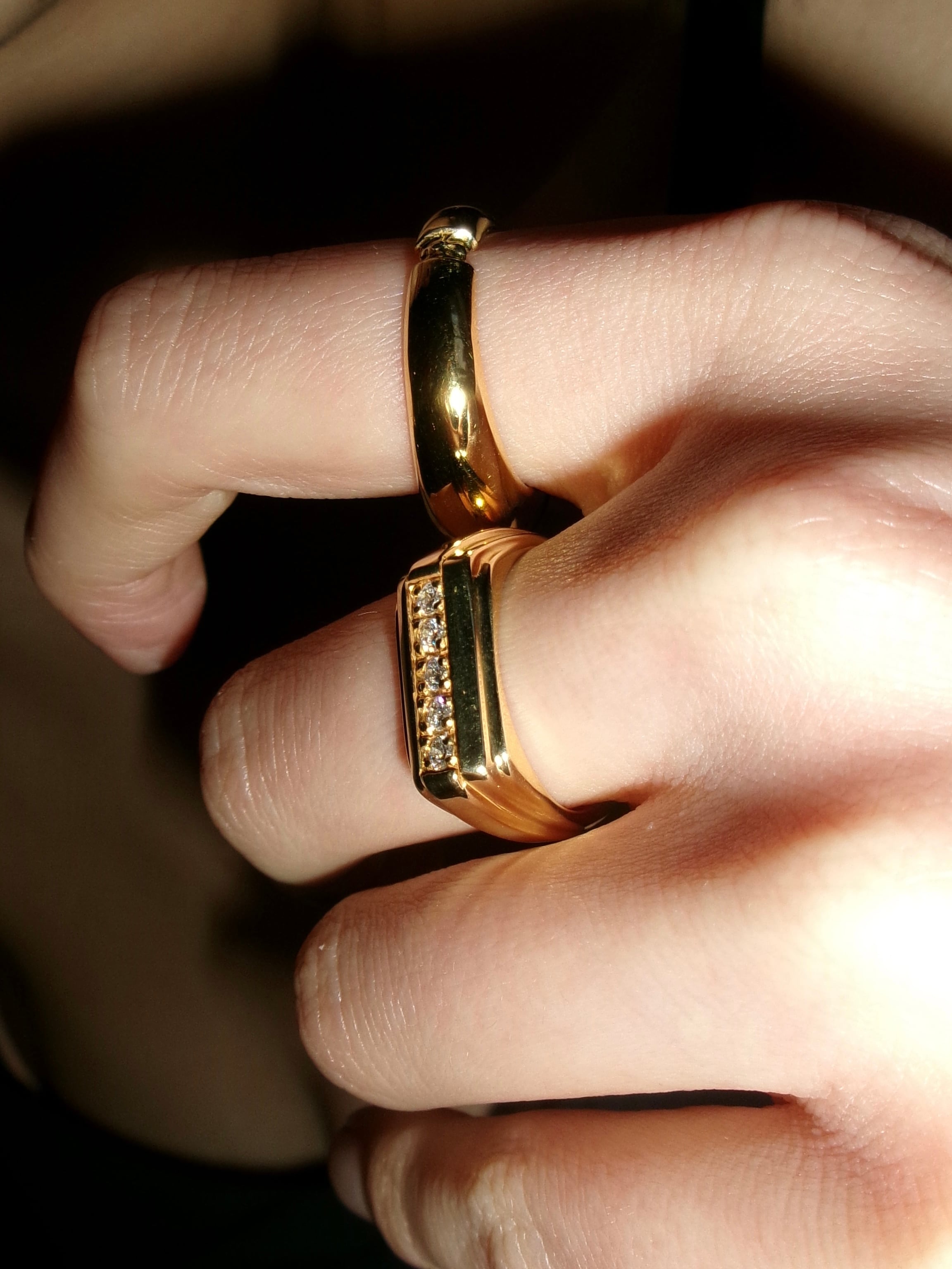 そこから広がる段差の角度を変えており、横から見たときの形状にもこだわったリングです。