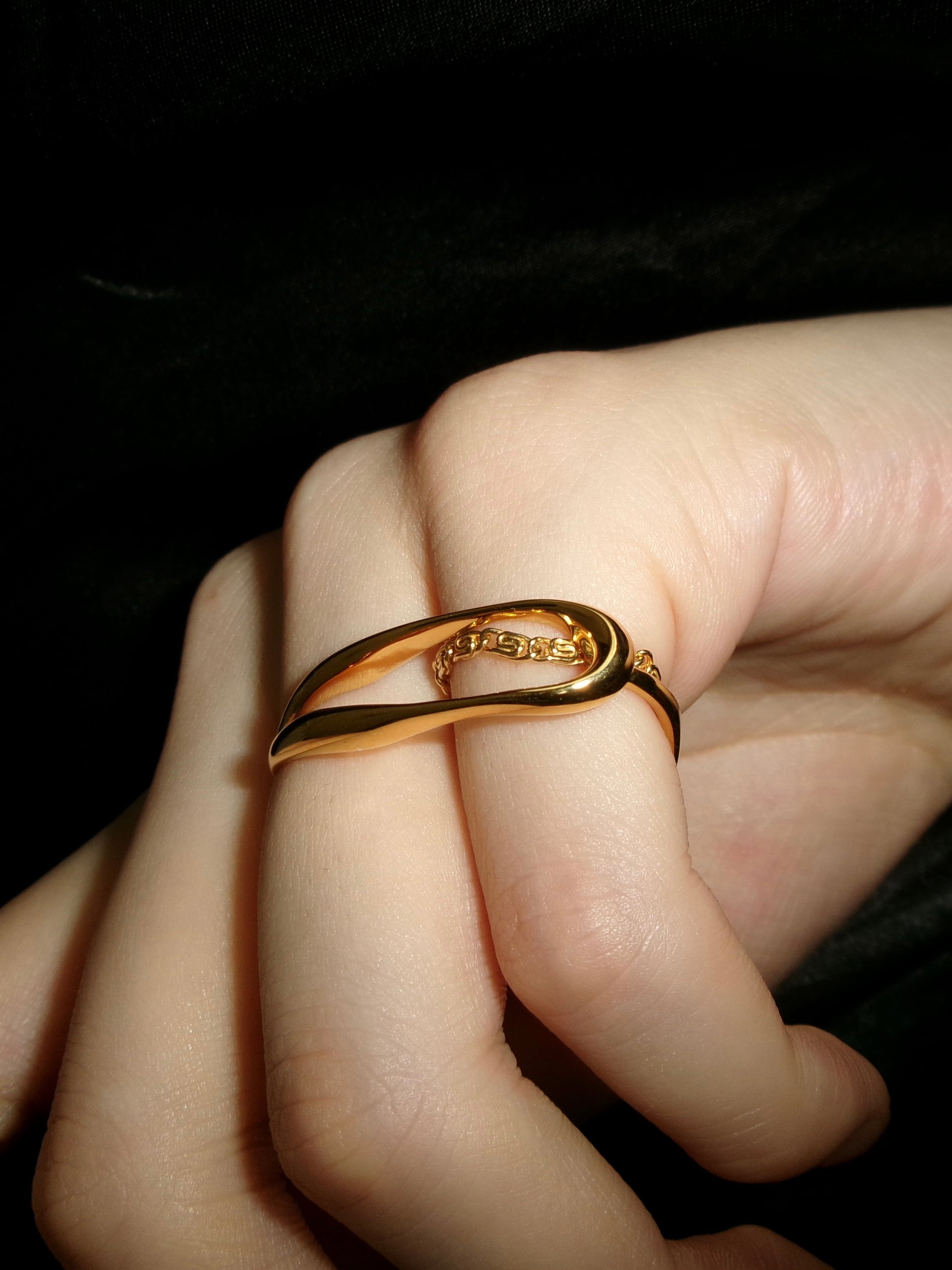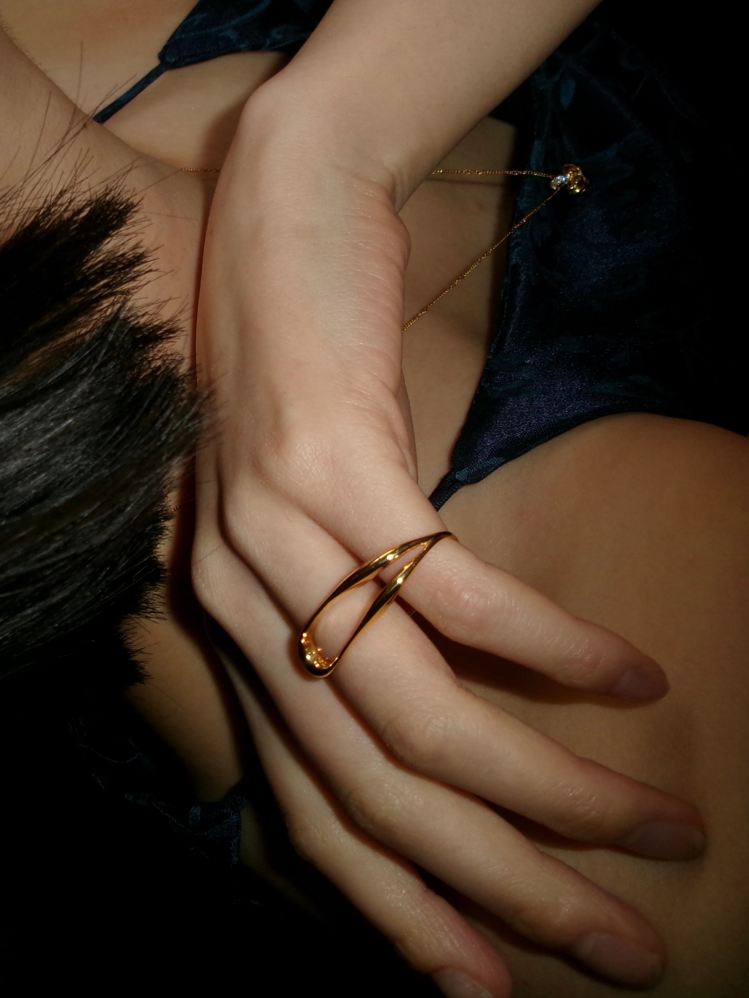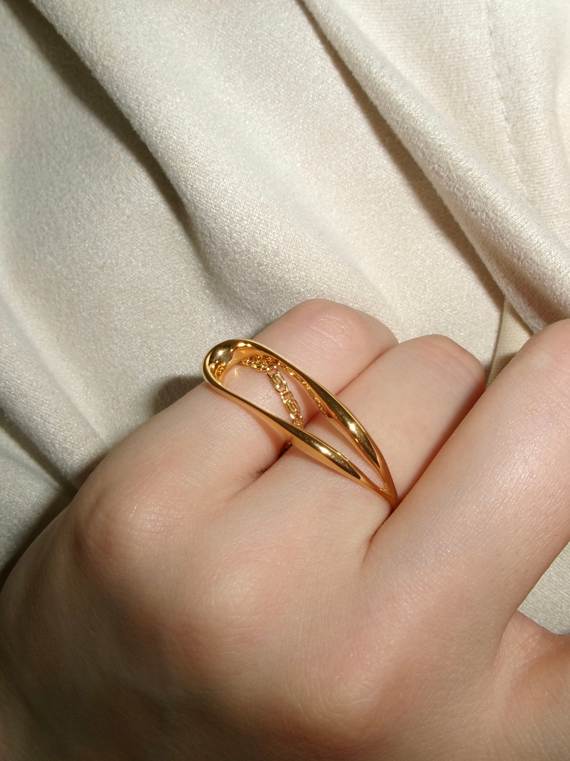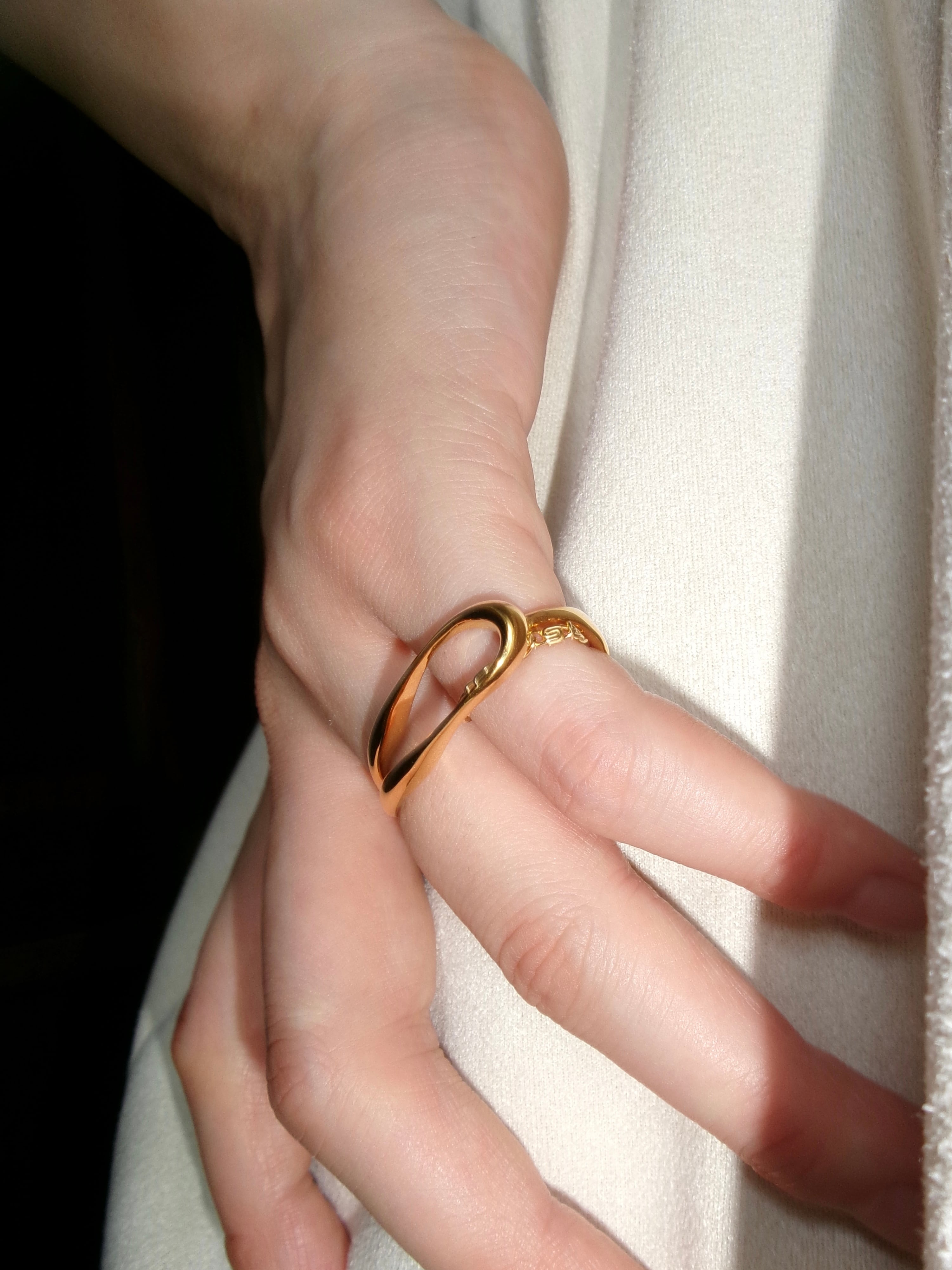 手元を美しく引き立てる上品な曲線デザインが特長のリング。